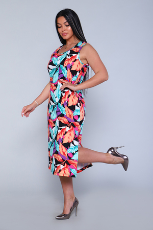 Женское платье - сарафан прямого силуэта из трикотажного полотна (100% хлопок). Горловина и пройма отделана окантовочной беей в цвет изделия. Внизу по боковым швам разрезы. Длина изделия ниже колена. Удобный сарафан, приятный к телу, не стесняет движения, подойдет беременным. Яркие стойкие цвета ткани. Большие размеры широкий размерный ряд 44-62. Для дома и дачи, для отдыха и прогулок, в отпуск, на море.