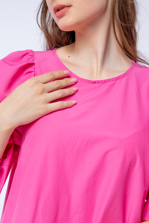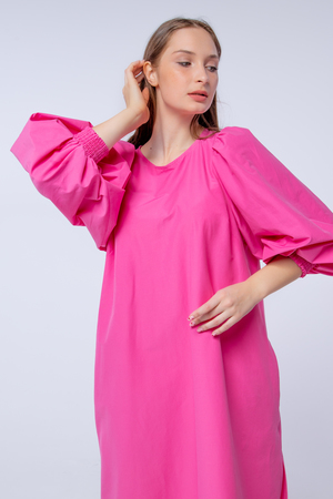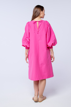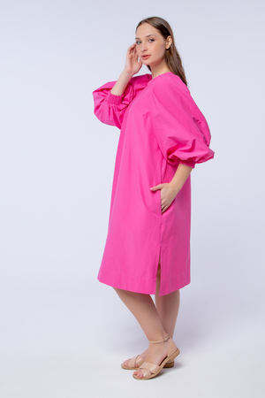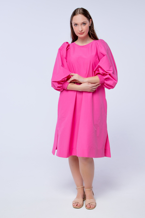 Летнее женское платье свободного силуэта отлично подойдёт обладательницам любого типа фигур. Благодаря своей лёгкости оно скроет все недостатки фигуры и подчеркнёт все достоинства. Кокетливые рукава-фонарики добавят образу воздушности, а манжеты с облегчённой резинкой не будут доставлять дискомфорт на протяжении всего дня. Хлопковая ткань из которой выполнено платье является дышащей и гигроскопичной, а это значит, что даже в самый жаркий летний день вам будет очень комфортно. Грамотно подобранная нашими дизайнерами цветовая гамма не оставит равнодушной ни одну модницу. Рекомендуем носить платье с сандалиями на плоской подошве, классическими белыми кедами и элегантными лодочками.