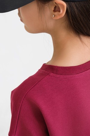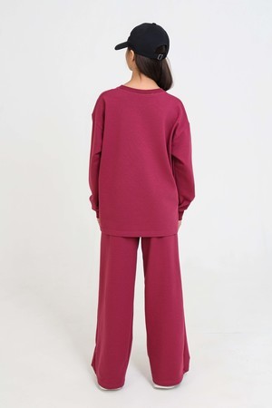 Спортивный костюм из футера мастхэв в детском гардеробе. Состоит их брюк-клёш и свитшота. Свитшот свободного кроя. Манжеты и горловина обработаны мягким кашкорсе. Брюки палаццо с карманами по бокам с поясом на мягкой резинке.