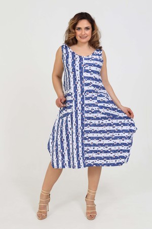 Роскошный летний сарафан в трендовой расцветке. Свободный, не облегает. При жаркой погоде лучше его не найти. Расклешен от груди, кант горловина, карманы настрочные, по бокам 2 разреза. Подходит беременным и женщинам с пышными формами. Сарафан свободной посадки, замеры указаны по реальным измерениям изделия.