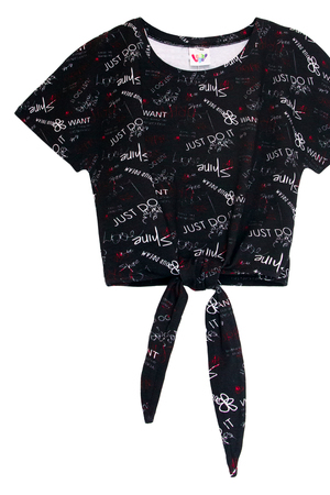 Эта футболка сделает образ девочки ярким и подарит отличное настроение! Она пригодится для спорта, прогулок и домашнего отдыха. Её можно носить с леггинсами, юбками, джинсами и комбинезонами в зависимости от случая и настроения. Изделие выполнена из хлопкового трикотажа. Горловина круглая, обработана воротником из кулирки. Горловина отстрочена нитками в цвет изделия. Завязки по низу изделия притачные, обработан швом вподгибку. Низ рукавов и низ изделия обработан швом вподгибку.