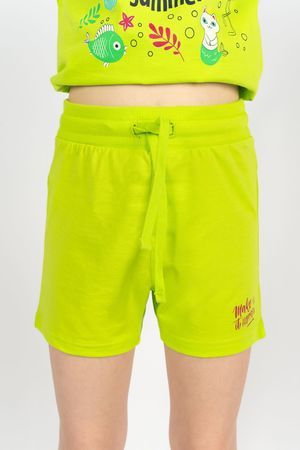 Детские спортивные шорты из натурального 100% хлопка. Идеально подходят как для занятий физкультурой, так и для повседневной носки. Яркие расцветки этой модели позволят собрать крутой, сочный образ для незабываемого лета! Пояс отрезной в цвет изделия, выполнен из кашкорсе. По поясу шорт вставлен плоский утягивающий шнурок. Шнурок закреплен отстрочкой вдоль пояса. Низ изделия обработан швом в подгибку. В боковых швах выполнены карманы с листочкой. На передней половинке шорт принт с глиттером
