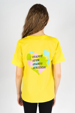 Футболка для девочки прямого силуэта с модным в этом сезоне спущенным коротким рукавом стала незаменимой одеждой на каждый день для тех, кто в тренде. Это красивое и стильное изделие отлично вписывается в повседневные образы и комбинируется с разной одеждой. Принт из шелкографии говорит всем вокруг о четырех важных аспектах жизни любой девочки. Горловина круглая, обработана воротником из кулирки. Низ изделия и рукава обработан швом вподгибку. На полочке принт, шелкография с глиттером.