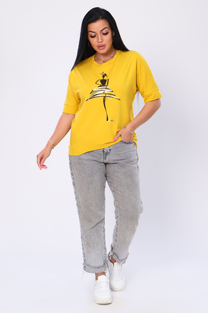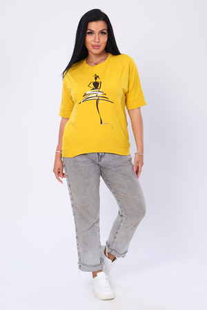 Футболка женская из кулирки с лайкрой высокого качества пенье. Модель свободного кроя, горловина круглая обработана обтачкой, цельнокроеный рукав длиной до локтя, низ спинки и рукав обработаны широким манжетом. Стильный принт, комфортная футболка придаст вашему образу индивидуальность и неповторимость, скроет недостатки и подчеркнёт достоинства фигуры.