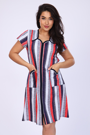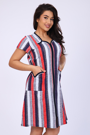 Уютный домашний женский халат на молнии. Выполнен из кулирки, с двумя карманами, с коротким рукавом общая длина приблизительно до коленей, очень приятный к телу.