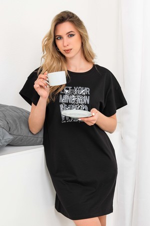 Туника приятно прилегает к телу и позволяет коже дышать. Оптимальная длина, короткие рукава и округлый вырез горловины отлично подойдет для дома и отдыха, дачи и прогулок.
