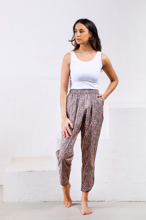 Брюки женские домашние выполнены из натуральной дышащей ткани (перкаль/100% хлопок), отличаются свободным кроем и оригинальным принтом. Создайте свою идеальную пижаму, сочетая эти брюки с однотонным топом или кофтой. • Машинная стирка при 30° на деликатном режиме • Гладить при умеренной температуре / отбеливание запрещено • Не использовать барабанную сушку • Сухая чистка запрещена