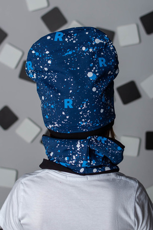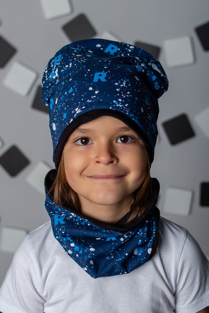 Детская шапочка для мальчиков в современных, приятных цветах.