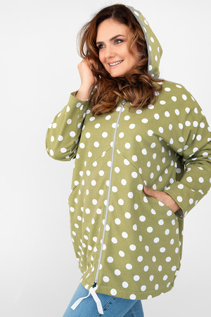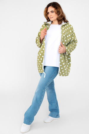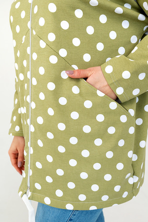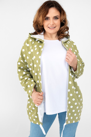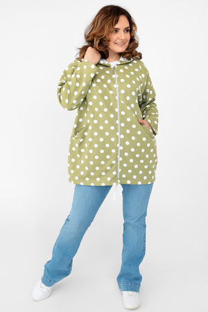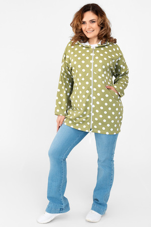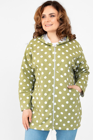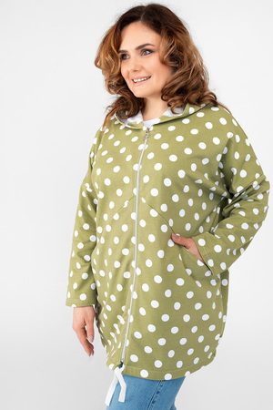 Стильный женский жакет на молнии, свободного кроя, с капюшоном, спущенная линия плеча, длинный рукав, на полочке прорезные карманы. Низ изделия регулируется по объему шнуром. Удобный практичный вариант для повседневной носки.