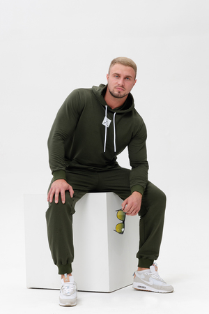 "Джордан". Стильный, однотонный классический спортивный костюм отлично подойдет для тренировок дома и игр на улице. Этот модный, мягкий трикотажный костюм с прямыми и аккуратными швами. Толстовка прямого силуэта с двойным капюшоном и карманом кенгуру. Брюки на манжете с карманами в боковых швах.