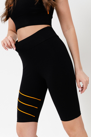 Велосипедки спортивные женские с ярким кантом, с широкой эластичной резинкой.