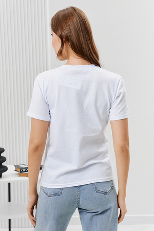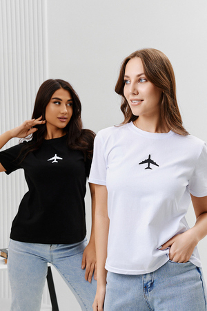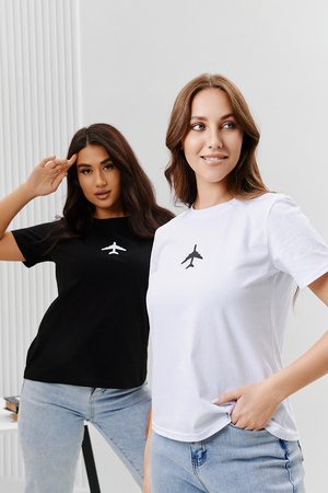 Футболка женская - это классика женского гардероба любой девушки. Это базовая модель с ярким принтом отлично смотрится с джинсами, юбками, брюками. Прямой силуэт, втачной рукав, горловина округлой формы обработана обтачкой из основного полотна.