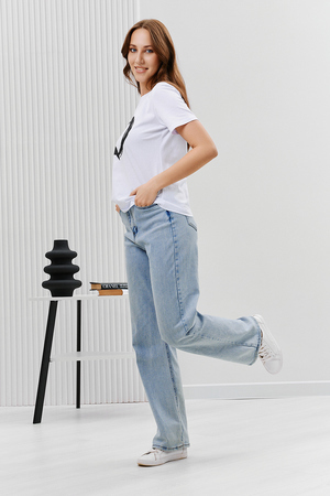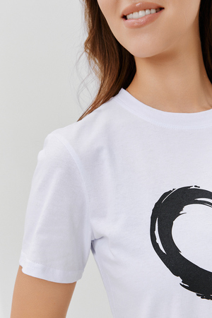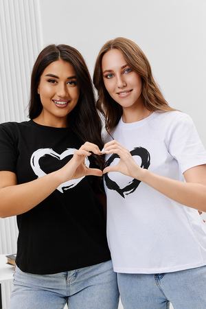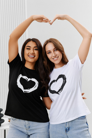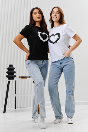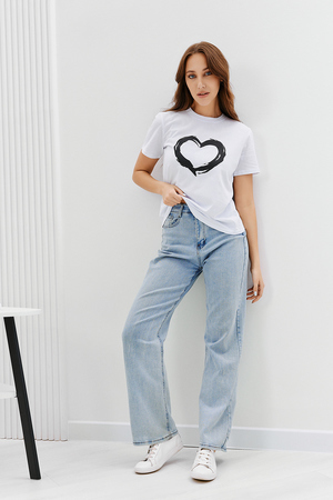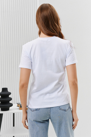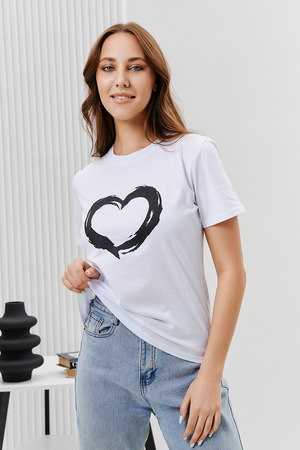 Футболка женская - это классика женского гардероба любой девушки. Это базовая модель с ярким принтом отлично смотрится с джинсами, юбками, брюками. Прямой силуэт, втачной рукав, горловина округлой формы обработана обтачкой из основного полотна.