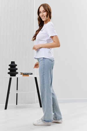 Футболка женская - это классика женского гардероба любой девушки. Это базовая модель с ярким принтом отлично смотрится с джинсами, юбками, брюками. Прямой силуэт, втачной рукав, горловина округлой формы обработана обтачкой из основного полотна.