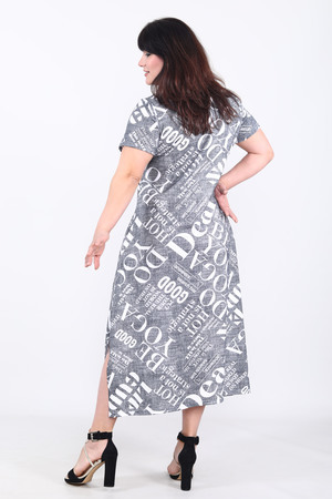 Платье женское свободного покроя с коротким рукавом. Данная модель выполнена из трикотажного полотна кулирка (хлопок 100%). На полочке присутствуют карманы накладные. По бокам присутствуют разрезы. Отлично подходит для повседневной носки.