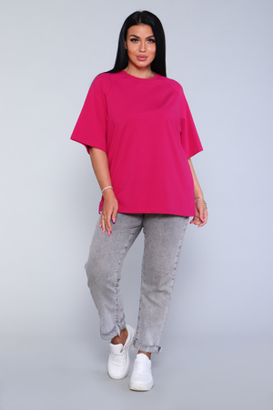 Стильная, модная женская футболка - лонгслив свободного прямого силуэта, оверсайз. Рукав реглан длиной до локтя. Горловина отделана обтачкой. Плавно подчеркивает фигуру, не стесняет движений, эластична, очень удобна и комфортна при носке. Низ рукава и низ футболки обработаны подгибкой. Выполнена из высококачественной кулирки с лайкрой пенье. Смежные размеры, 44 соответствует 42 и 44, 48 - 46 и 48, 50 - 50 и 52. Большой ассортимент приятных однотонных расцветок, другие расцветки данной модели представлены артикулом 71012. Футболка данной модели и шорты 71013 образуют прекрасный домашний, уличный, спортивный костюм (продаются отдельно). Костюм можно дополнять кедами, сандалиями, кроссовками. Для дома и отдыха, для спорта, для прогулок, удобна для ношения в дороге, в отпуск, на дачу. Свободный покрой футболки делает ее комфортной для ношения беременным. Вдохновляйтесь и удивляйте окружающих стильными, модными образами!