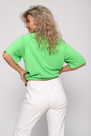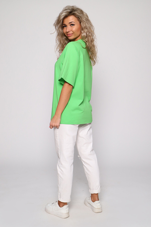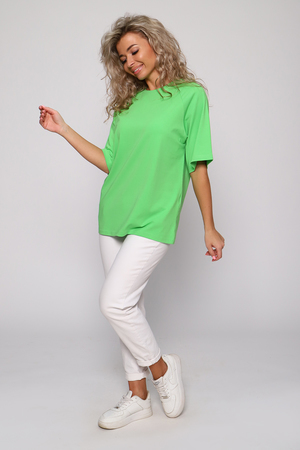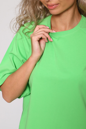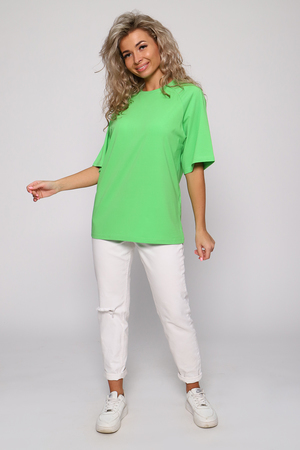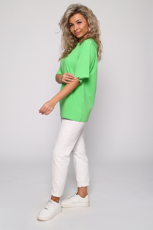 Стильная, модная женская футболка - лонгслив свободного прямого силуэта, оверсайз. Рукав реглан длиной до локтя. Горловина отделана обтачкой. Плавно подчеркивает фигуру, не стесняет движений, эластична, очень удобна и комфортна при носке. Низ рукава и низ футболки обработаны подгибкой. Выполнена из высококачественной кулирки с лайкрой пенье. Смежные размеры, 44 соответствует 42 и 44, 48 - 46 и 48, 50 - 50 и 52. Большой ассортимент приятных однотонных расцветок, другие расцветки данной модели представлены артикулом 71012. Футболка данной модели и шорты 71013 образуют прекрасный домашний, уличный, спортивный костюм (продаются отдельно). Костюм можно дополнять кедами, сандалиями, кроссовками. Для дома и отдыха, для спорта, для прогулок, удобна для ношения в дороге, в отпуск, на дачу. Свободный покрой футболки делает ее комфортной для ношения беременным. Вдохновляйтесь и удивляйте окружающих стильными, модными образами!