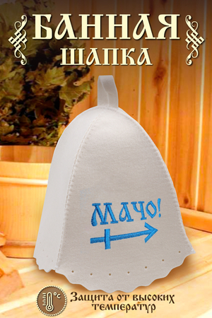 Шапка для бани изготовлена из натурального войлока и имеет универсальный размер, что делает ее удобной для ношения в бане или сауне. Головной убор защитит вас от перегрева во время СПА процедуры. Банная шапочка имеет красивую качественную вышивку "Мачо".