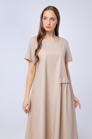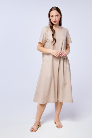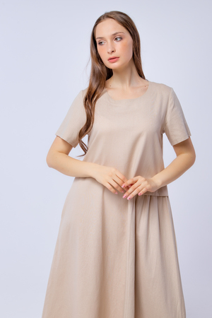 Летнее платье А - силуэта отличный вариант как для офиса, так и для летних прогулок. Акцентная сборка на талии добавляет силуэту лёгкости и выгодно отличает платье от других, подобных моделей. Длинна миди подходит любому типу фигур, а длинна рукава позволяет деликатно скрыть проблемные места. Модель разработана специально для девушек с аппетитными формами, в ней учтены все желания наших покупательниц. Лён, из которого выполнено платье, является экологичным и дышащим материалом.