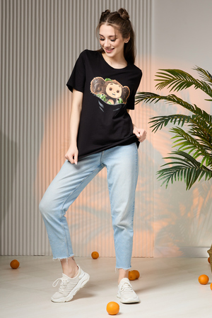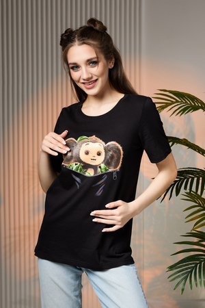 Женская футболка с принтом Чебурашка в кармашке выполнена из 100% натурального хлопка. Качественная и стильная футболка. Футболка прямого кроя с оптимальной плотностью на любой сезон. Хорошо сидит на фигуре, комбинируются с любой повседневной одеждой. Подходит для занятий спортом, для дома, а также как подарок на праздник, день рождения, юбилей, 8 марта, новый год. Принт сохраняется после множества стирок, ткань приятна к телу.