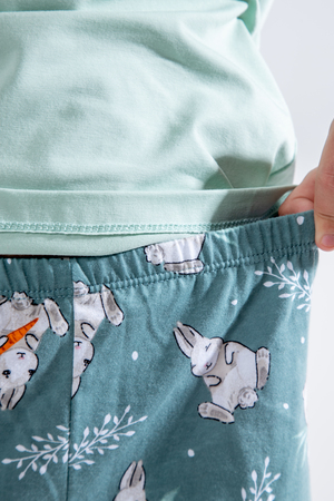 Комфортная пижама для девочки с ярким модным принтом "Кролик-морковка". Пижама детская состоит из футболки и шорт. Дизайн ткани позволяет использовать пижаму не только для сна, но и как костюм для дома. Материал очень мягкий и в то же время износостойкий, не скатывается и не вытягивается. Модель пижамы не сковывает движения ребенка во время сна. Покрой футболки полуприталенная, шорты классические без карманов. Пижама выполнена из 100% гипоаллергенного хлопка, что позволяет коже ребенка дышать во время сна.
