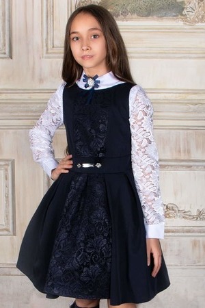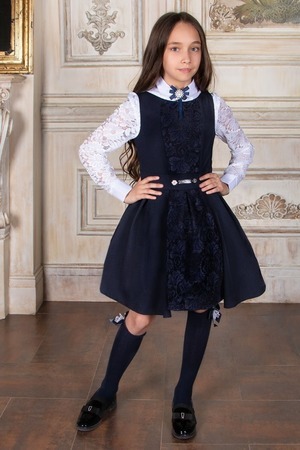 Стильный сарафан премиум качества для девочки. Модель дополнена съемным подъюбником на пуговицах. Школьные сарафаны представлены в нескольких вариантах цвета: синий, черный и серый. Благодаря разнообразию фасонов вы сможете выбрать подходящий образ именно для вашей школьницы. Праздничный сарафан с бретелями - крылышками похож на советский форменный фартук. Другие модели украшены втачным поясом, который завязывается в роскошный бант на спине. Остается только дополнить образ эффектной блузой! Детский сарафан комфортен в носке, подойдет под любую блузку, водолазку, кофточку как для повседневной носки в школу, так и для праздника: на 1 сентября, 8 марта, линейку, выпускной. Детское нарядное платье без рукавов сшито из габардина - ткань рекомендована для пошива школьной формы. Материал износостойкий, одежда из него не сильно мнется, не образует катышков, легка в уходе: отлично стирается и сушится в машине, не требует тщательной глажки – достаточно стряхнуть и повесить на плечики. Сарафан подходит для детей, обучающихся в начальной школе или первом классе, а также для девочек подростков учениц средних классов, для детей от 6-7, 8-9, 10-11 до 12-13 лет, размерная сетка от 116 до 152 см.