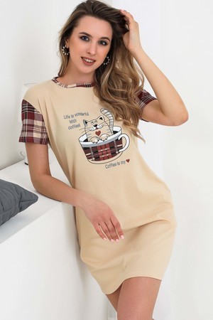 Молодёжная сорочка в виде удлинённой свободной футболки с милым симпатичным принтом. Можно использовать в качестве домашней туники.