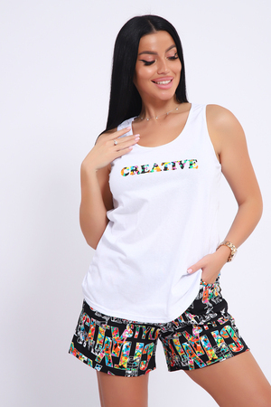 Костюм с шортами, отличный вариант для проведения домашнего досуга. Модель состоит из трикотажного полотна кулирки (100% хлопок). Изделие очень приятное к телу, а благодаря крою совсем не сковывает движения.