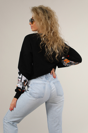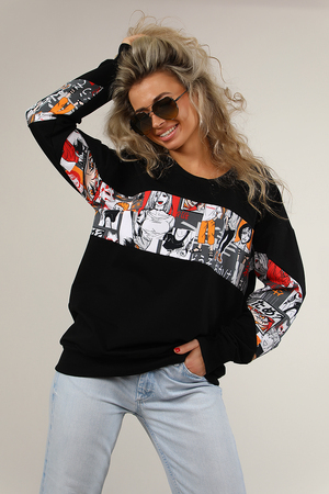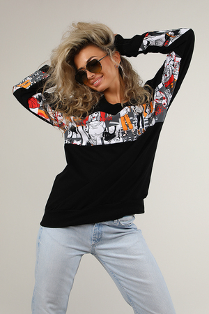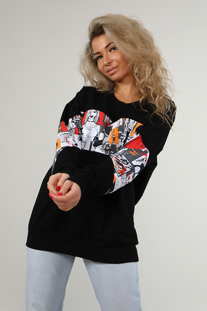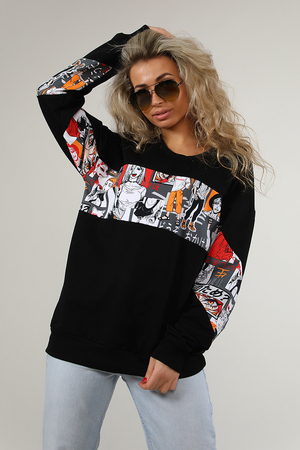 Толстовка с длинным рукавом  в стиле оверсайз. Данная модель выполнена из трикотажного полотна футер с лайкрой. Горловина, манжеты по рукавам и низ отделаны трикотажным эластичным полотном кашкорсе. На изделии присутствуют вставки. Отлична модель для приятного отдыха и прогулок.