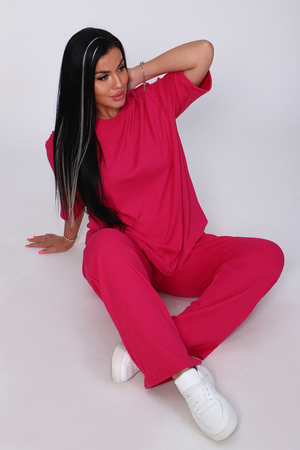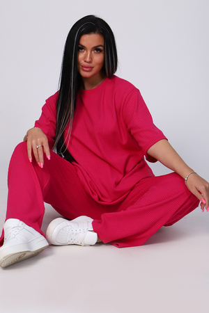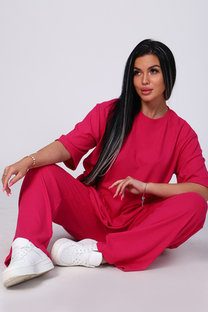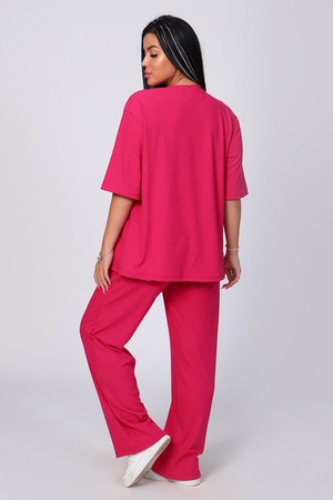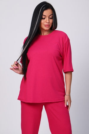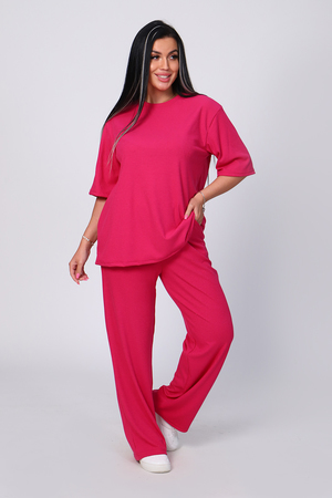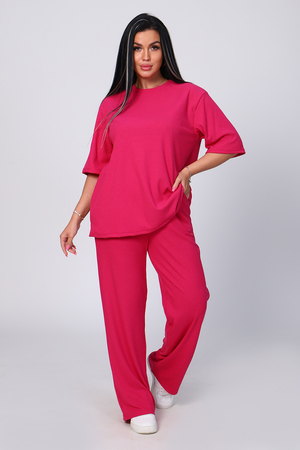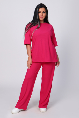 Костюм женский с широкими брюками. Кофта оверсайз удлинённая, рукав до локтя, горловина обработана обтачкой. Брюки длинные, широкие с карманами. Большой размерный ряд. На модели 48 размер.