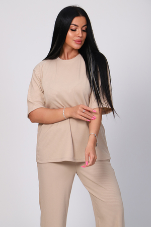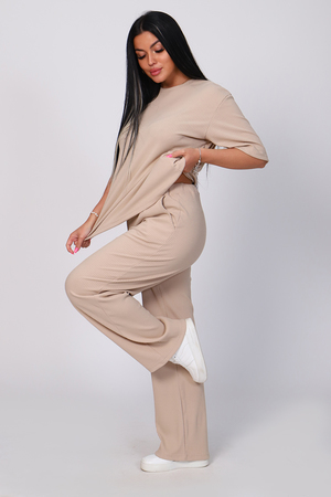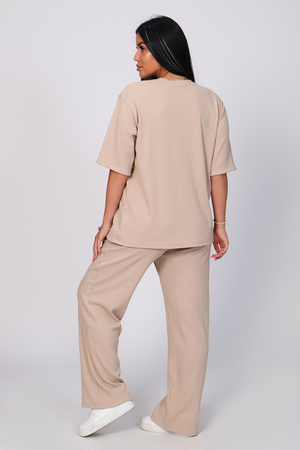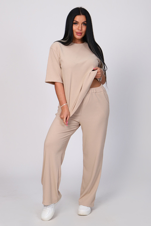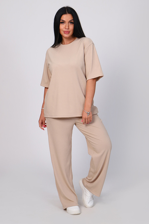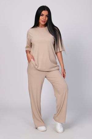 Костюм женский с широкими брюками. Кофта оверсайз удлинённая, рукав до локтя, горловина обработана обтачкой. Брюки длинные, широкие с карманами. Большой размерный ряд. На модели 48 размер.