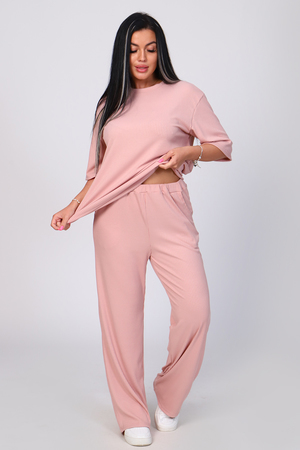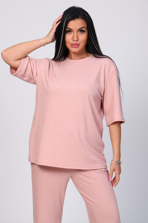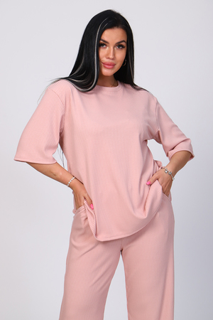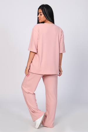 Костюм женский с широкими брюками. Кофта оверсайз удлинённая, рукав до локтя, горловина обработана обтачкой. Брюки длинные, широкие с карманами. Большой размерный ряд. На модели 48 размер.