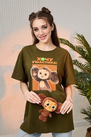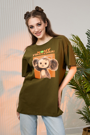 Футболка в стиле "оверсайз". Прямая, свободная, удлиненная, с округлой горловиной. Рукав короткий. Горловина обработана обтачкой из основного полотна.