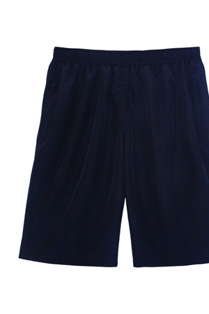 Шорты мужские прямого силуэта. Пояс отрезной, выполнен из основного полотна, с эластичной тесьмой внутри. Внутри пояса шорт вставлен плоский утягивающий шнурок с пластиковым наконечником. На уровне бедер выполнены карманы с прорезной листочкой, вход в карман с замком. Низ изделия обработан швом в подгибку.
