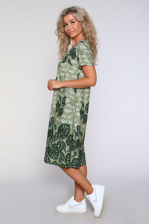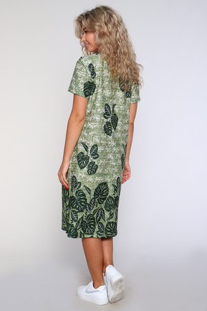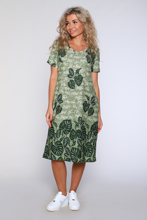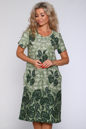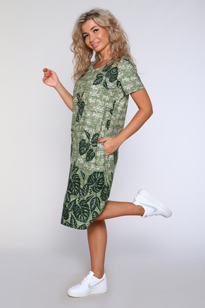 Платье полуприлегающего силуэта с короткими рукавами и карманами в боковых швах.