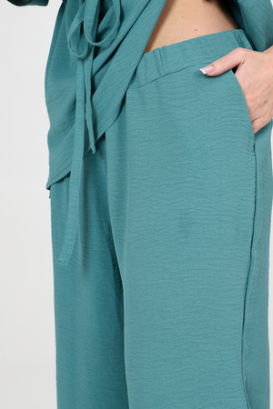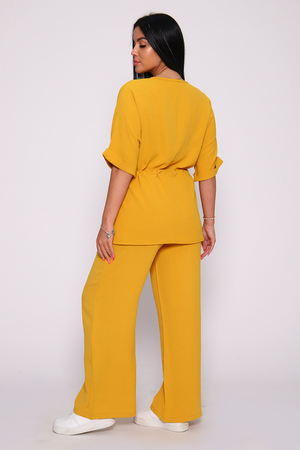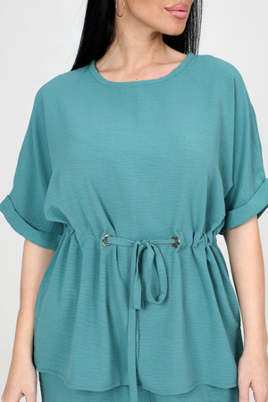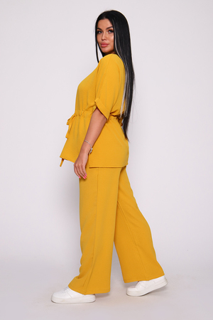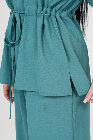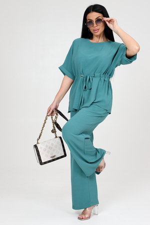 Представляем Вам костюм двойку. Костюм состоит из туники и брюк свободного кроя и доступен в трех расцветках. Модель туники напоминает летучую мышь, что придает костюму легкость и воздушность. Этот костюм - идеальное решение для жаркой погоды, благодаря его легкому и воздушному материалу.