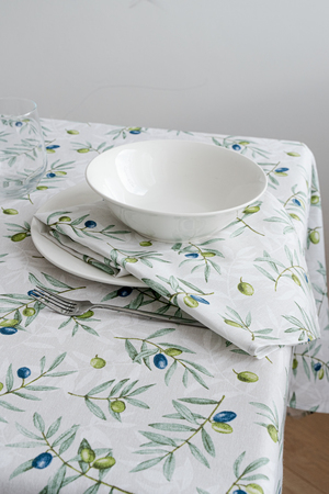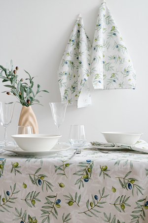 Полотенца из рогожки давно стали незаменимым атрибутом современной кухни. Про их практичность можно слагать легенды. Полотенца из рогожки отличаются высокой плотностью и износостойкостью, отлично впитывают влагу и не требуют особого ухода. Все эти качества делают рогожковые полотенца идеальным кухонным атрибутом. В наборе 3 полотенца размером 60*48, к каждому пришита петелька, что делает их использование еще более удобным. Современный дизайн с изображением ветвей оливы подойдет к любому интерьеру и добавит свежести любой кухне. Набор полотенец отлично сочетается со скатертью Долина, продается отдельно.