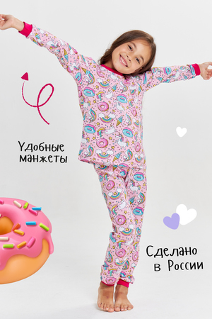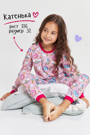 Детская пижама из 100% хлопка для юных принцесс. Нежные, пастельные, светло-розовые тона с забавным, оригинальным принтом.