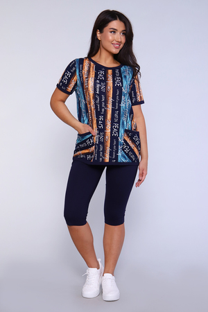 Дачный костюм из футболки с карманами и бриджами длинной ниже колена. Свободная удлиненная футболка и облегающие бриджи очень удобны в быту и на огороде.