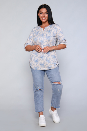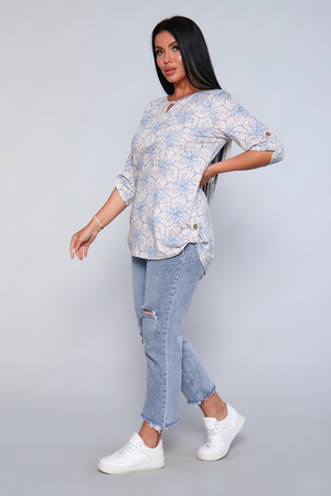 Женская блуза - туника с рукавом 3/4 с фигурным вырезом с окантовкой из основной ткани. Длина рукава регулируется патой на пуговице. Такая же регулировка находится по бокам изделия. Можно носить как с опущенной патой, так и собранной на декоративную пуговицу. Низ изделия закруглен, перед немного укорочен. Блузка отлично подойдет как для уличного, так и домашнего ношения. Прекрасно сочетается с джинсами на прогулку, с юбками - миди в офис, с домашними брюками для дома и дачи. Большой ассортимент приятных расцветок на любой вкус. Туника прекрасно смотрится на беременных, так как выполнена в свободном стиле. Отличный подарок любимым женщинам!