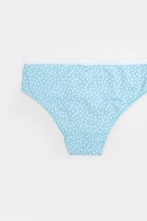 Деталь переда цельнокроеная. Ластовица из основного полотна, отлетная по верхнему срезу. Задняя деталь цельнокроенная. Верхний срез трусов обработан эластичной тесьмой. Нижние срезы трусов обработаны эластичной тесьмой.