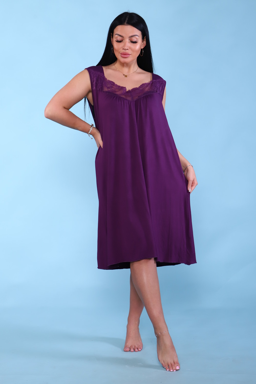 Женская сорочка свободного кроя, декорированная кружевом по периметру выреза и с обработкой низа краёвкой нитками в тон кружева. т выреза небольшая сборка. Подходит для сна, отдыха и домашнего ношения. Чувственная сорочка от ивановского производителя, с которой не захочется расставаться! Она выполнена из нежнейшей вискозы, это натуральный материал, который приятно холодит кожу и имеет отблеск. Сорочка украшена итальянским кружевом. Да, дома тоже можно быть красивой! Ночная сорочка женская для беременных и кормящих, свободного кроя, декорированная кружевом. От выреза не большая сборка. Подходит для сна, отдыха и домашнего ношения. Обратите внимание на безупречный пошив, что немаловажно для изделий из вискозы. Свободный силуэт подходит для покупательниц всех возрастов, а модель носит всесезонный характер. Сорочка не стеснит ваших движений, подарит приятные ощущения телу. Сделайте свою повседневную жизнь красивой и комфортной! Ввиду особенностей технологического процесса в трикотажном производстве в некоторых размерах сорочек может присутствовать средний шов по спинке. Данная модель может послужить отличным подарком для любимой женщины, мамы, бабушки... Преподнесите себе и любимым идеальный подарок, который нужен в гардеробе каждой женщины. Желаем приятных покупок и будем рады видеть Вас в числе наших покупателей.
