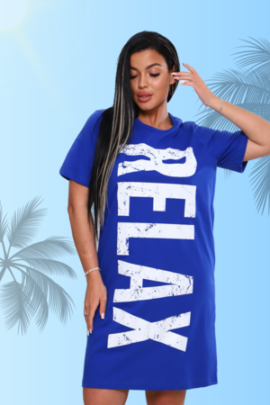 Туника женская, из трикотажного хлопка. Представлена в классических расцветках. Со стильным, крупным принтом на передней части изделия. Свободный, не сковывающий движений силуэт. Подходит в качестве повседневной и домашней одежды. В линейке имеются большие размеры.