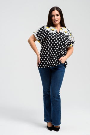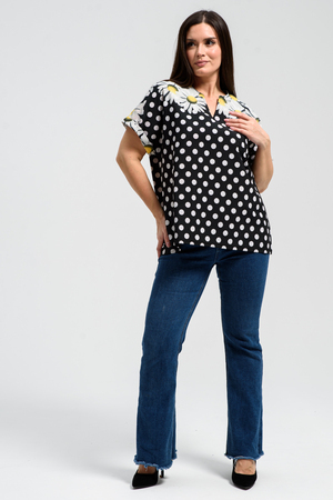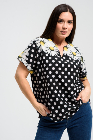 Туника женская прямого силуэта со спущенным коротким рукавом на манжете. Округлый V-образный воротник. Легкая и удобная.