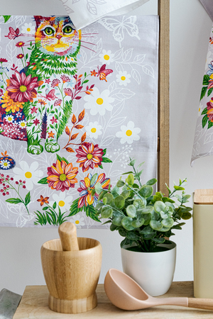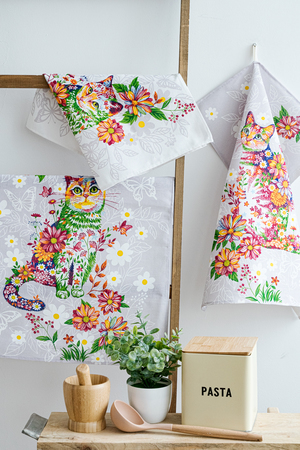 Яркий набор из трех полотенец с цветочным принтом и кошечками способен поднять настроение даже в самый тоскливый день. Забавные изображения разноцветных кошек в цветах создают атмосферу легкости и уюта. Полотенца размером 60*48 выполнены из рогожки отличного качества. Изделия сохраняют первоначальный вид, не теряют форму и цвет даже после многочисленных стирок. Полотенца отлично впитывают влагу и быстро сохнут. К каждому полотенцу пришита петелька. Кухонный набор Чудесный день может служить готовым подарком для близких и коллег.