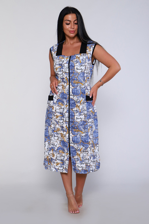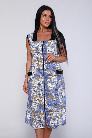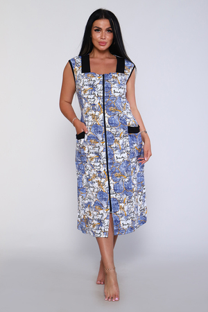 Халат трикотажный женский домашний классического кроя с фигурным вырезом на молнии. Халат представлен без рукавов, снабжен двумя накладными и вместительными карманами, также присутствует пояс, который подчеркнет вашу прекрасную фигуру и добавит элегантности, поскольку хорошо проветривается благодаря свободному крою и легкому материалу, на 100% состоящему из хлопка.  когда дома уже достаточно тепло. Данная модель прекрасно подойдет для дома, отдыха, дачи и даже поездки к морю, темные и сдержанные цвета идеальны для занятий домашними делами. Размерная сетка модели включает большие размеры. Стильный и легкий халат подойдет любому типу фигуры, женщинам с пышными формами, а также беременным и кормящим.