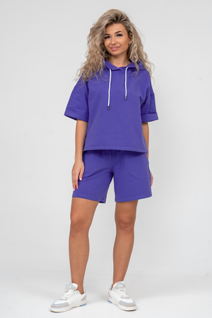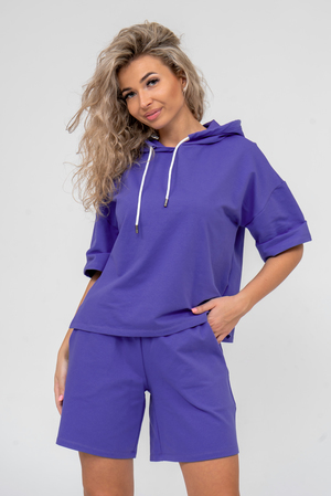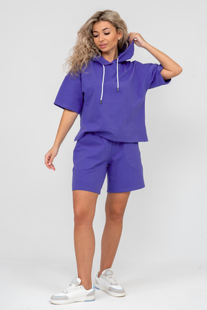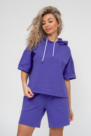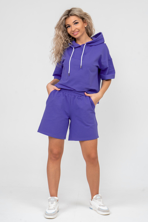 Женский костюм 2-ка выполнен из футера высокого качества с хлопком и небольшим добавлением полиэстера и лайкры, что позволяет изделию не скатываться и оставлять идеальный внешний вид на долгое время. Костюм состоит из толстовки и шорт. Толстовка с капюшоном и шнурком. Линия плеча спущена, рукав укороченный, по бокам имеются небольшие разрезы. Свободный крой прекрасно будет смотреться на дамах с любыми формами. Костюм такого плана представлен в широкой размерной сетке, что позволяет выбрать его как девушке, так и женщине. Однотонный костюм модных расцветок будет удачным выбором для поездок в отпуск, на пикник, для активного отдыха и прогулок по городу. Будет гармонично сочетаться как с кроссовками, так и с туфлями, балетками или босоножками. Используя эту модель в качестве домашнего костюма, Вы поймёте, что это именно тот самый идеальный вариант, в котором вы будете себя чувствовать удобно, комфортно и современно. Костюм с шортами - это настоящая находка для тех, кто ценит свою индивидуальность!