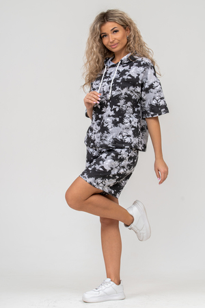 Женский костюм 2-ка выполнен из футера высокого качества с хлопком и небольшим добавлением полиэстера и лайкры, что позволяет изделию не скатываться и оставлять идеальный внешний вид на долгое время. Костюм состоит из толстовки и шорт. Толстовка с капюшоном и шнурком. Линия плеча спущена, рукав укороченный, по бокам имеются небольшие разрезы. Свободный крой прекрасно будет смотреться на дамах с любыми формами. Костюм такого плана представлен в широкой размерной сетке, что позволяет выбрать его как девушке, так и женщине. Однотонный костюм модных расцветок будет удачным выбором для поездок в отпуск, на пикник, для активного отдыха и прогулок по городу. Будет гармонично сочетаться как с кроссовками, так и с туфлями, балетками или босоножками. Используя эту модель в качестве домашнего костюма, Вы поймёте, что это именно тот самый идеальный вариант, в котором вы будете себя чувствовать удобно, комфортно и современно. Костюм с шортами - это настоящая находка для тех, кто ценит свою индивидуальность!