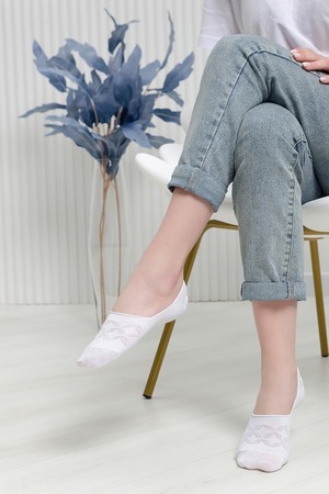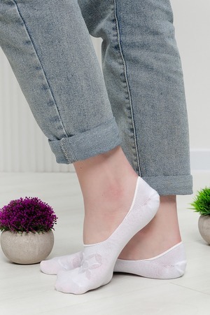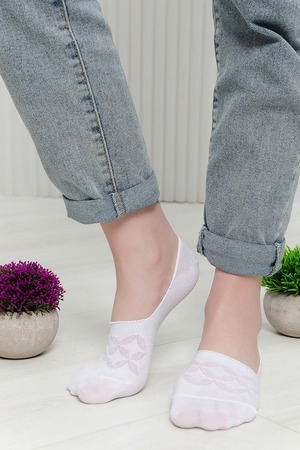 Изящные женские следки. Легкие, тонкие, идеально подходят под открытые кроссовки или кеды. Смягчающий язычок сзади препятствует натиранию, а мягкая резинка фиксирует следок на ноге. Верх следка украшен ажурным узором. В комплекте 2 пары.