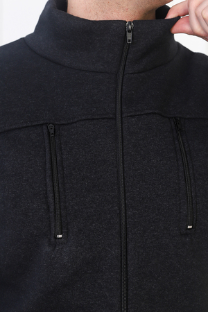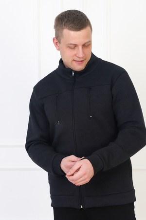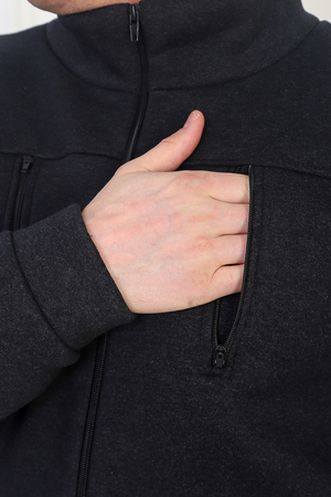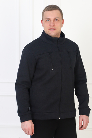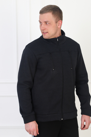 Мужская толстовка из футера трехнитки с начесом. Манжеты на рукавах и по низу, застегивается на молнию, на груди два вертикальных кармана на молниях